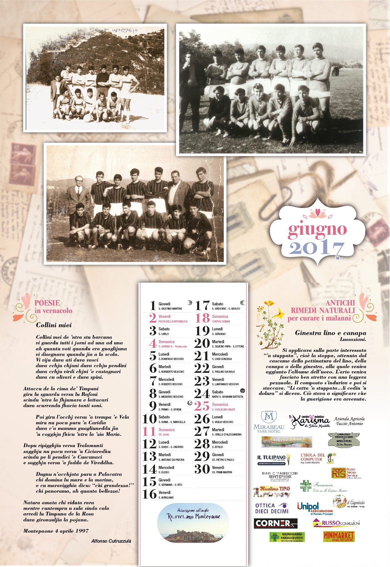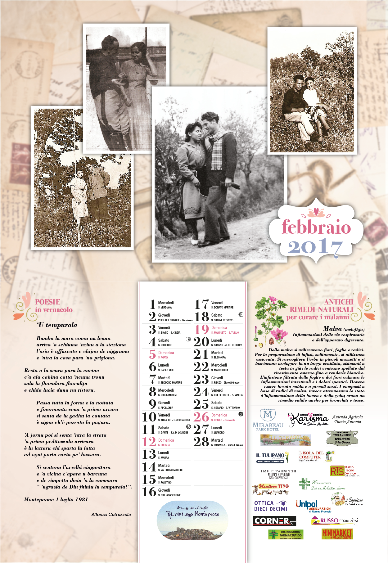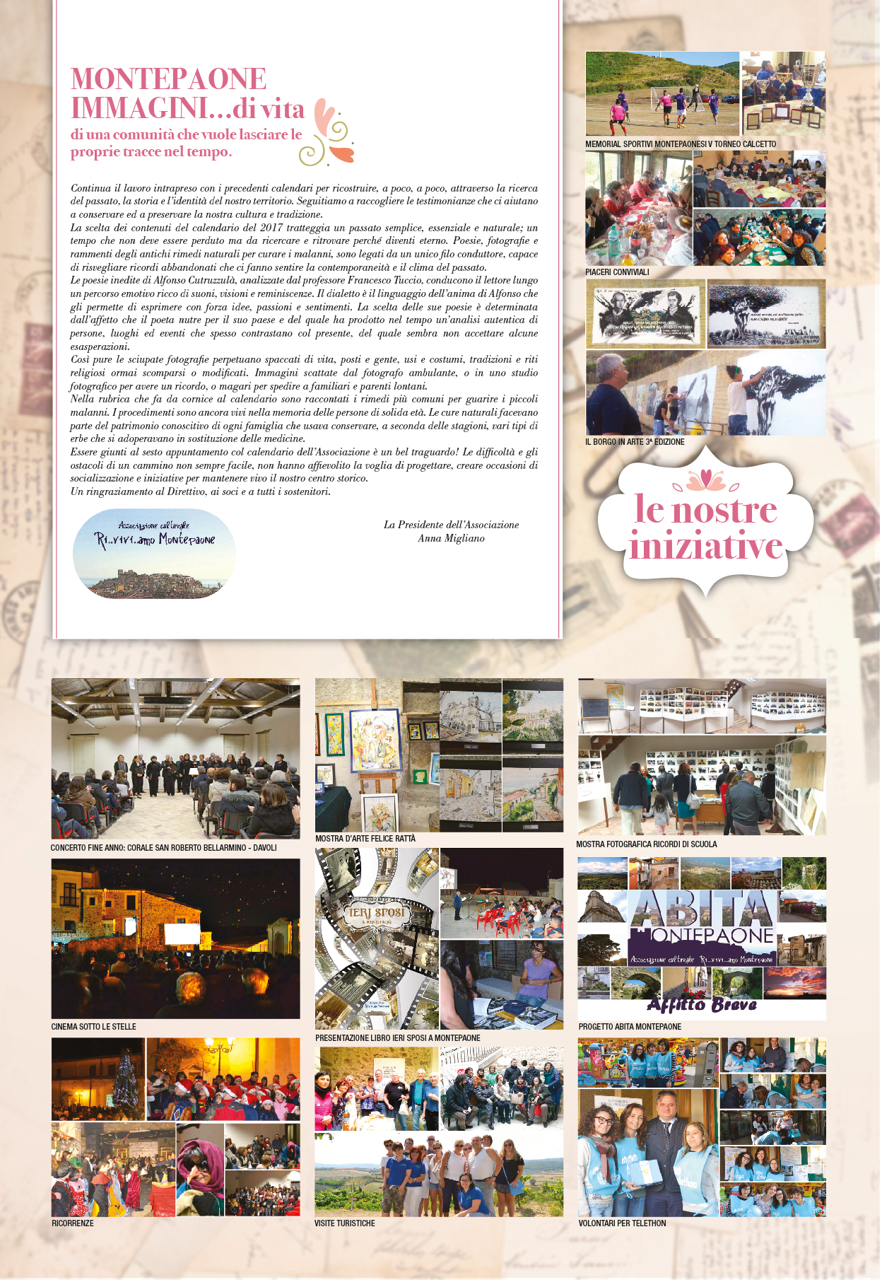 Continua il lavoro intrapreso con i precedenti calendari per ricostruire a poco a poco, attraverso la ricerca del passato, la storia e l’identità del nostro territorio. Seguitiamo a raccogliere le testimonianze che ci aiutano a conservare e a preservare la nostra cultura e tradizione.