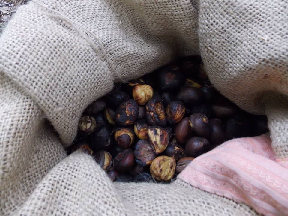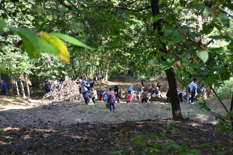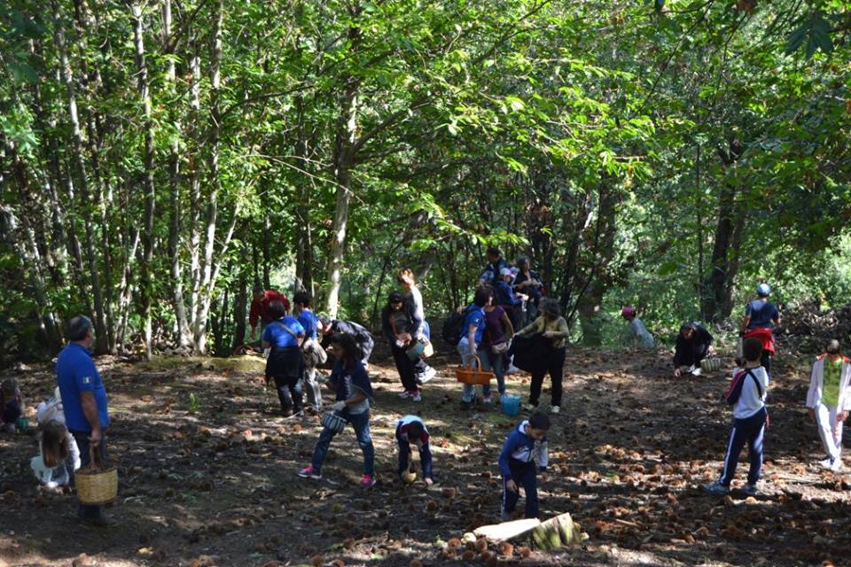 - Arrivo alla "Rosa dè Bianchi" nel Fondo di Luciano Viscomi e raccolta collettiva delle castagne.