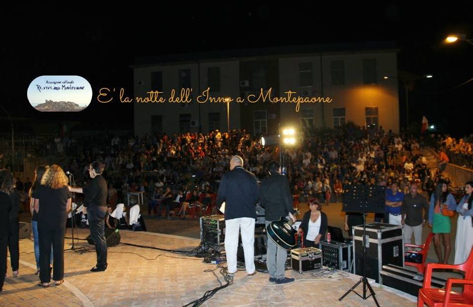 La presentazione ufficiale al vasto pubblico è avvenuta nel mese di agosto. La notte dell’Inno ha previsto vari intermezzi musicali, di approfondimenti sulla storia di Montepaone, di letture del testo dell’inno e di un vivace dibattito che ha intrattenuto il vasto pubblico fino a tardi, grazie anche allo spettacolo musicale dei Taranta Jonica. Le voci soliste e quelle corali, dall'ampia piazza sono giunte fino ai cuori della gente che attendeva quelle giuste note e parole che solo gli artisti sanno trovare e che tutti, poi, condividiamo.