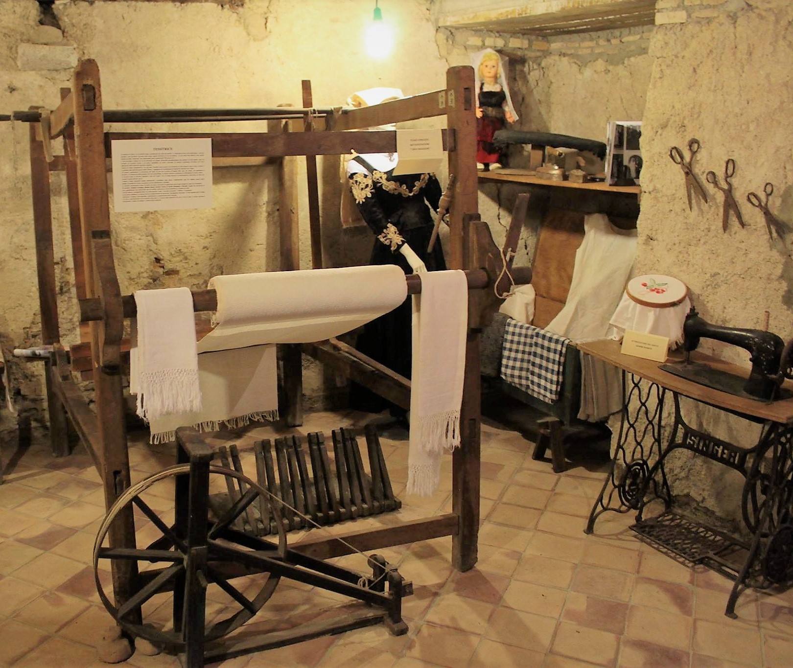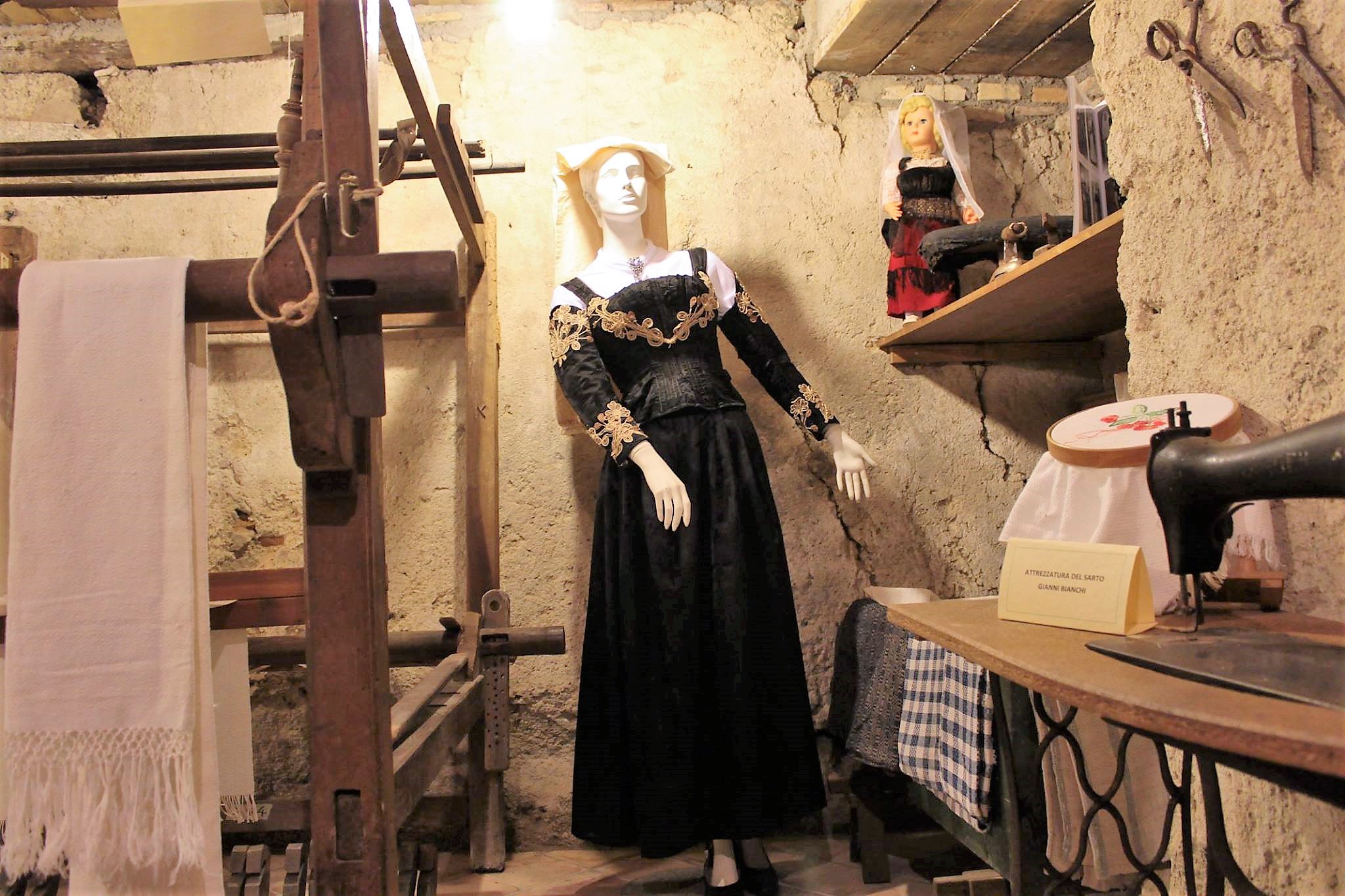Entrando in questo locale, l’interesse degli ospiti è catturato da un vecchio telaio per la tessitura e da un manichino che indossa un abito da matrimonio del primo novecento, da un vecchio banco da falegname corredato dei suoi attrezzi. Un’esposizione che riporta indietro nel tempo, quando nei vicoli risuonavano i rumori dei mestieri ormai scomparsi.
