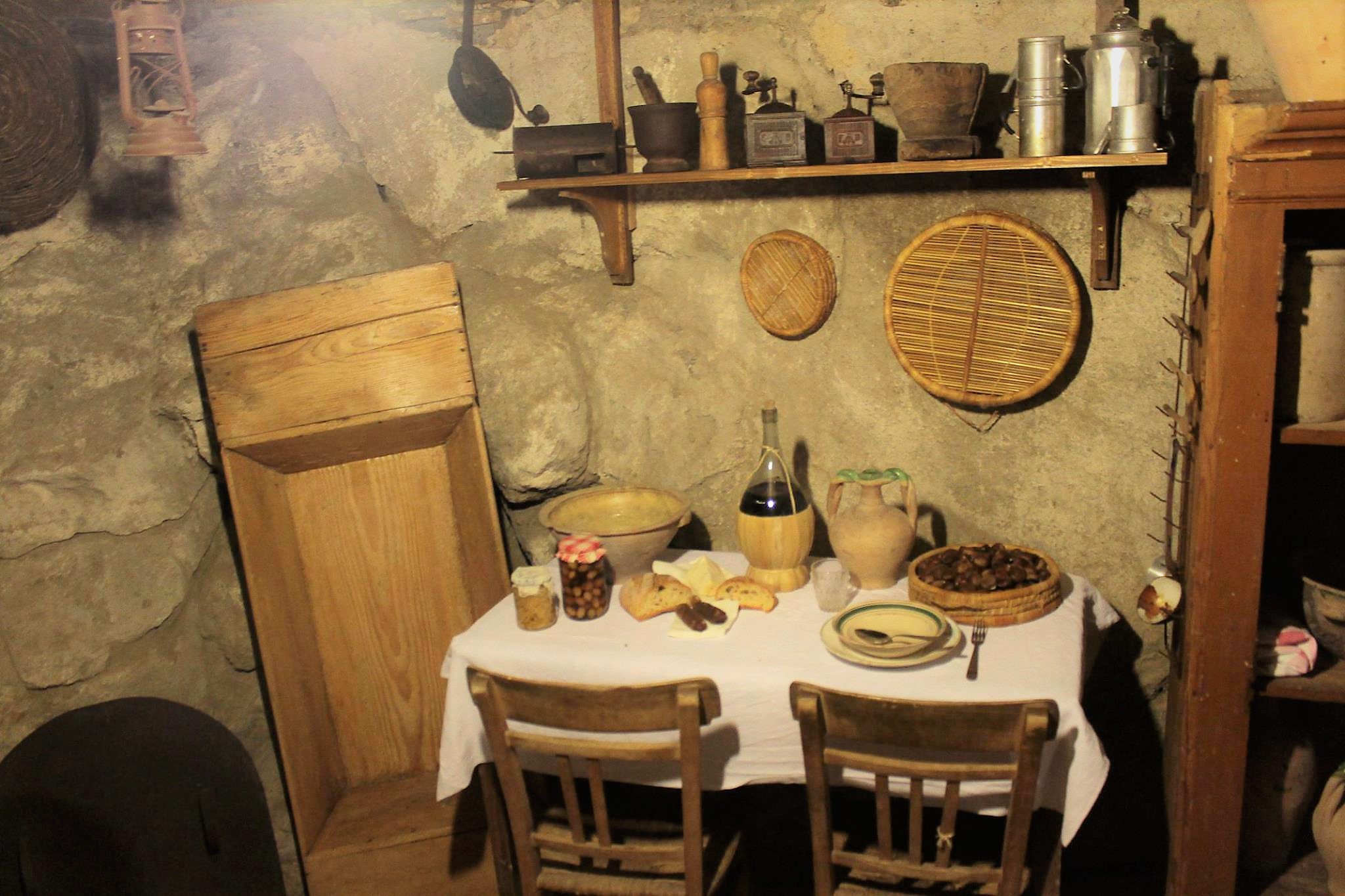 Questo ambiente riproduce la vita contadina tra le mura domestiche. Oggetti essenziali e semplici, molti tra questi creati dagli artigiani locali, come mortai, madie, treppiedi, tostacaffè e paioli. Non potevano mancare i famosi crivi, annoverati tra i prodotti locali d’eccellenza, e la cui produzione resiste ancora al tempo. Un antico letto cattura l’attenzione del visitatore che può percepire l’atmosfera di pace e serenità della famiglia di un tempo, riunita intorno al braciere.